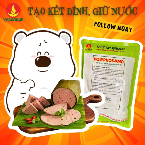 – Tạo cấu trúc cho sản phẩm thịt. Tương tự VMC-K7 nhưng hàm lượng phosphate thấp hơn giúp cho những thịt chất lượng không tốt vẫn đảm bảo dai giòn.